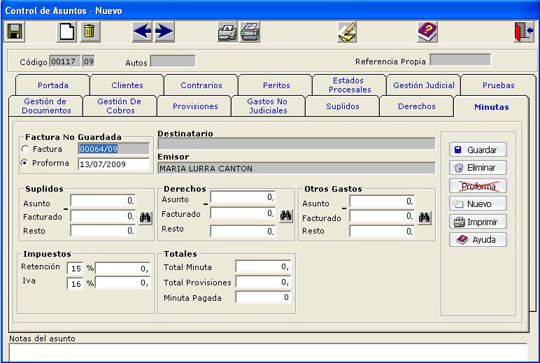 - Emisión de facturas proforma y minuta, con numeraciones independientes.