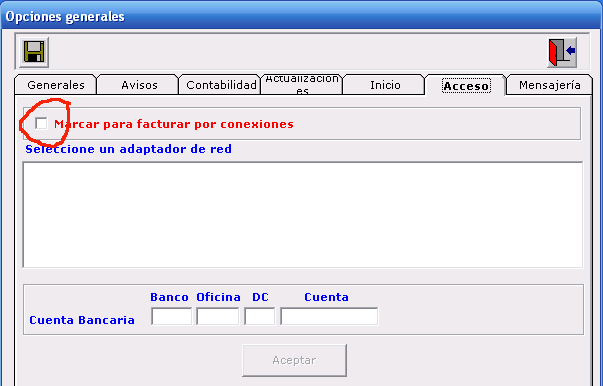 Seleccionamos el adaptador de red por el cual vamos arealizar la conexión, y hacemos click en aceptar. El programa se reiniciará y ya tendrás el programa preparado para facturar por el uso que le des.